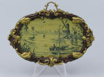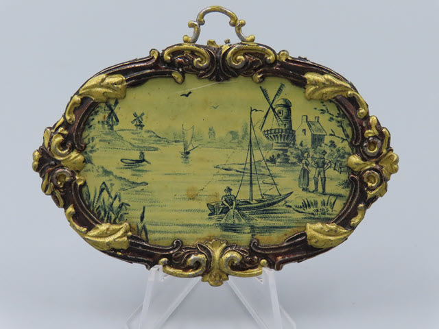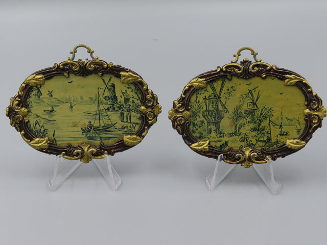gold. The oval paintings also have a hanger at the top. The back side of the