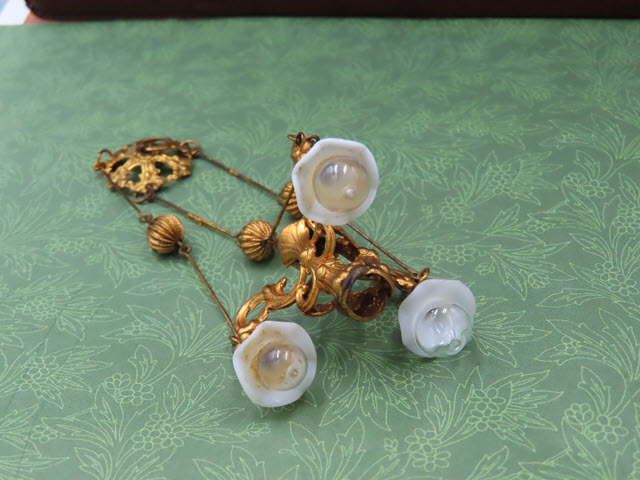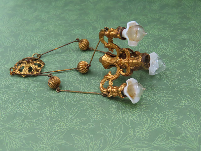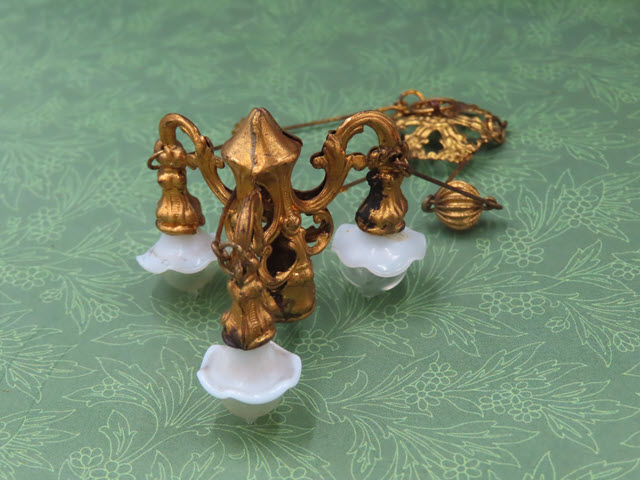 hangs and looks inside a dolls' house. This three part chandelier is hung with