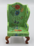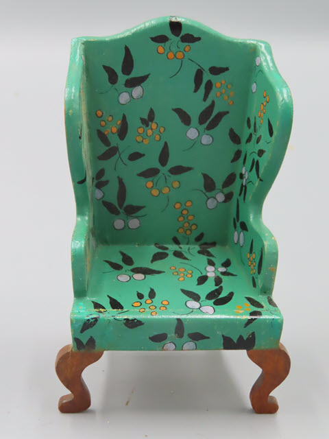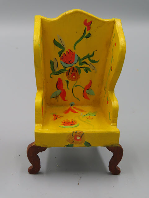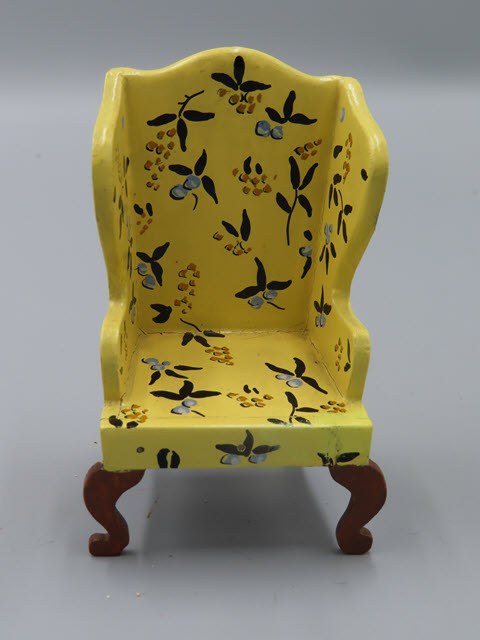 Tynietoy Wing Chairs All the wing chairs are the same but with different flower designs. Measurements: 4-1/2"h. x 2-5/8"w. Circa: 1920 Price: $150 each, the green wing chair has SOLD!