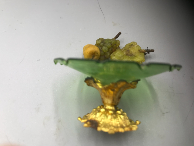 5. A green glass tray to display food is suspended on an ormolu base - $75