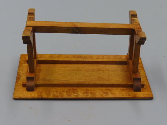 connected by a thicker and larger stretcher at the base. The legs are connected
