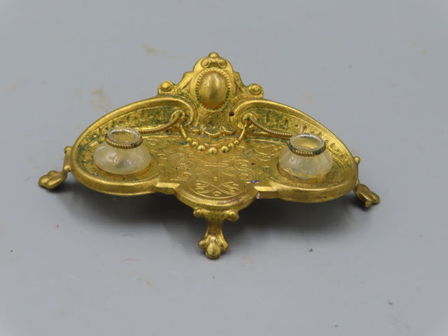 The ormolu holder has four small feet to raise the inkwells! Inlay designs