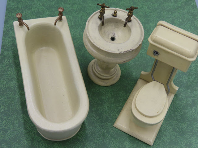set consists of a tub, basin and toilet. The faucets on the tub and