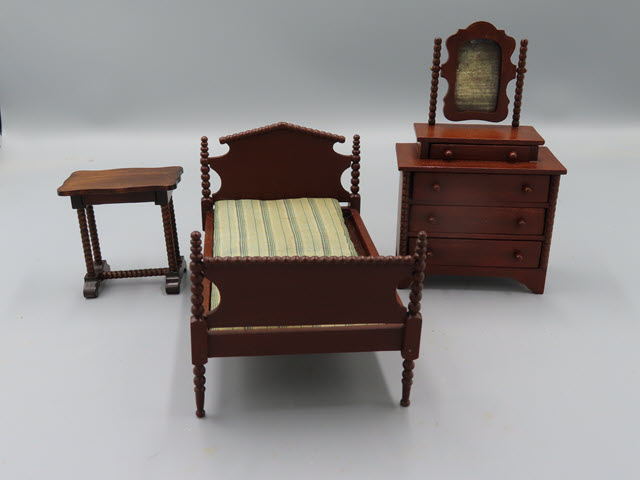 Measurements: The bed is 3-3/4" at the headboard, is 6-1/2" long and 4"w.