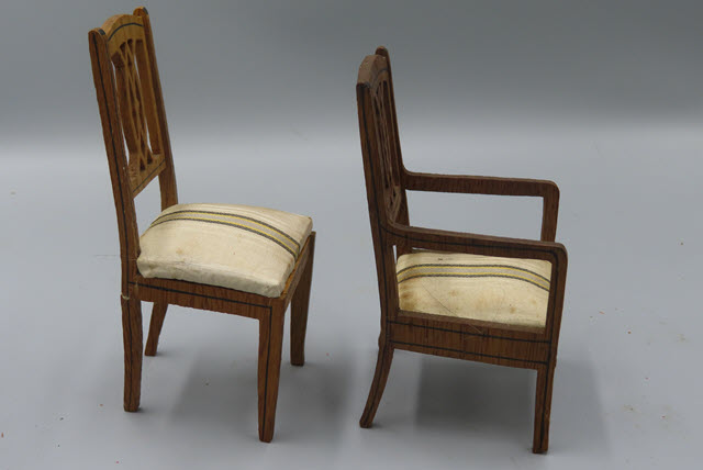 These chairs are nicely made with silk upholstery. One is an arm chair while