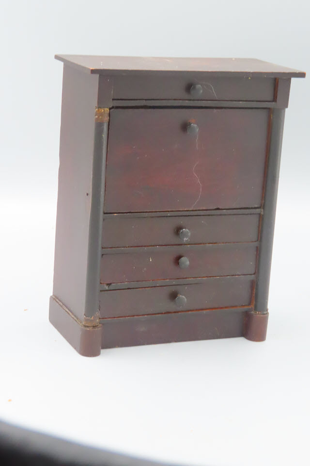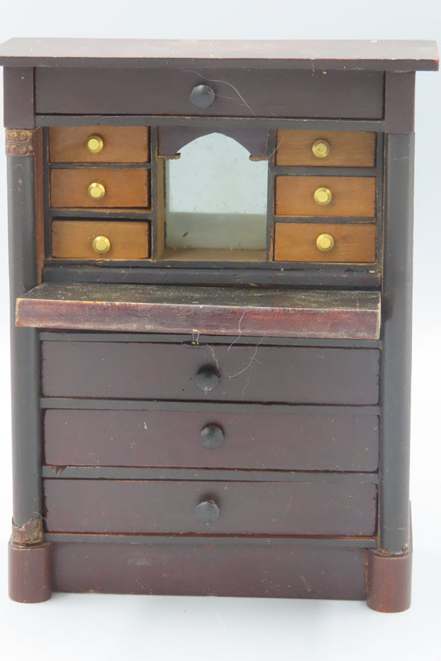 has six small drawers that can be opened with a recessed mirror in the