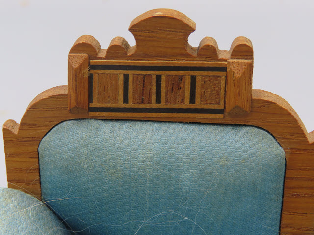 material. It is perfect! The top of the settee has carved wood with inlay!