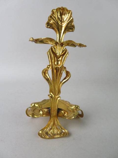 You can see the "Lily" made as the standing post on the back which is a typical design for Art Nouveau work. Circular holders are attached to the lily to hold the umbrellas. The base is lavish with strong wedge designs to hold the tips of the umbrellas.