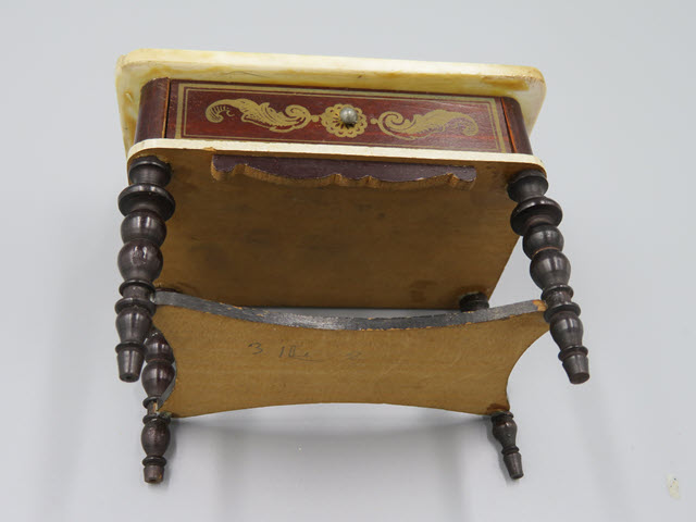 and holes to hold bottles etc. on the top shelf. A bowl and