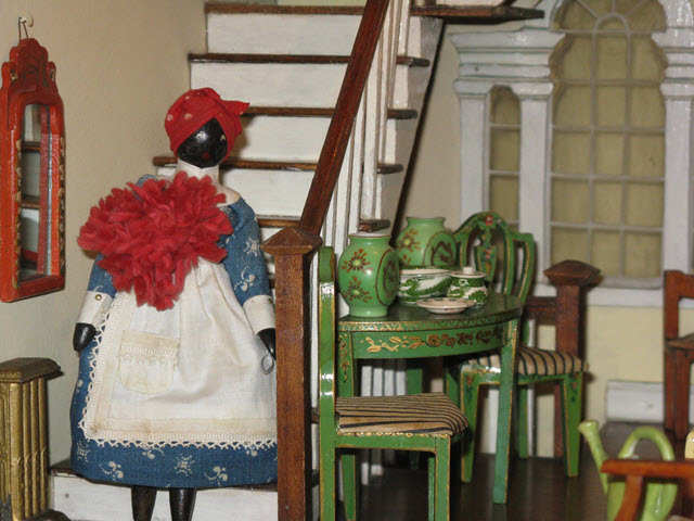 Of course the porcelain dishes in green are very striking too! The Black maid is very scarce and she is delightful in